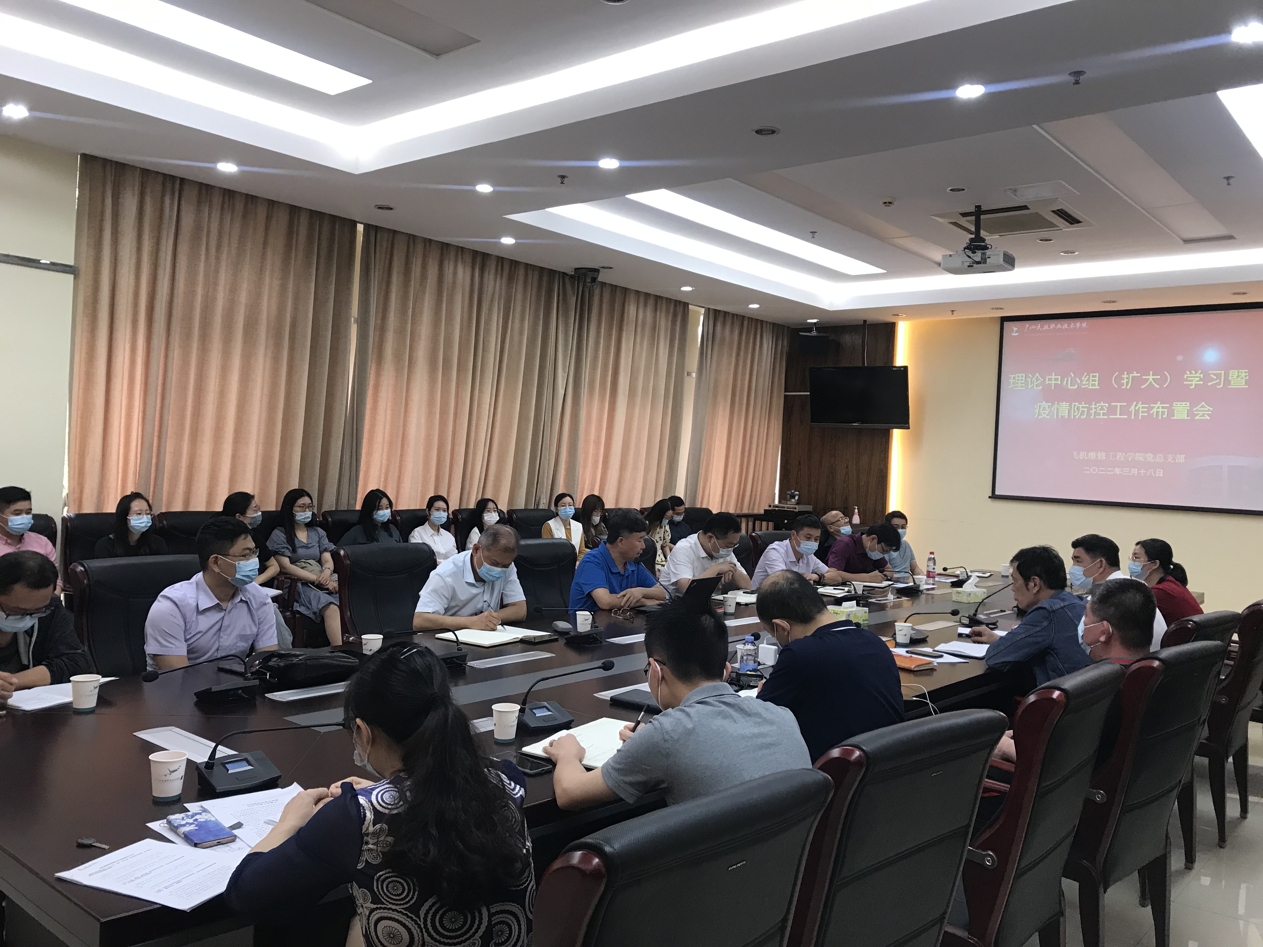 3月18日上午,飞机维修工程学院在白云机场校区A1-105会议室召开理论中心组(扩大)学习会暨疫情防控工作布置会,学校解根怀校长、涂卫军副校长出席会议,飞机维修工程学院领导班子、各支部书记及支委、全体行政人员和辅导员参加会议,会议由党总支部方松书记主持。