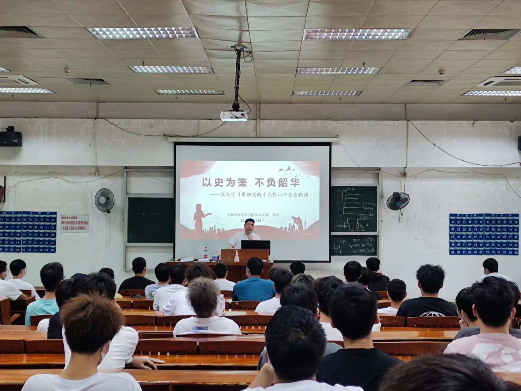 方松书记以《以史为鉴 不负韶华——深入学习贯彻党的十九届六中全会精神》为题,在机场路校区综合楼阶梯三室为同学们讲授了“书记第一课”。他为同学们详细地讲解了十九届六中全会召开情况,解读了《中共中央关于党的百年奋斗重大成就和历史经验的决议》,在回顾党的百年奋斗重大成就和历史经验的基础上,方松书记结合民航工作,为同学们讲解了“一个理念、两翼齐飞、三条底线”的民航发展的基本原则和民航英雄机组的事迹,介绍了2021级“卓越机务人”培养计划,并对同学们提出几点要求:一是增强行业发展认知,坚定民航强国信念;二是学习英雄机组,用榜样指引方向;三是强化纪律意识,为民航强国而努力学习。