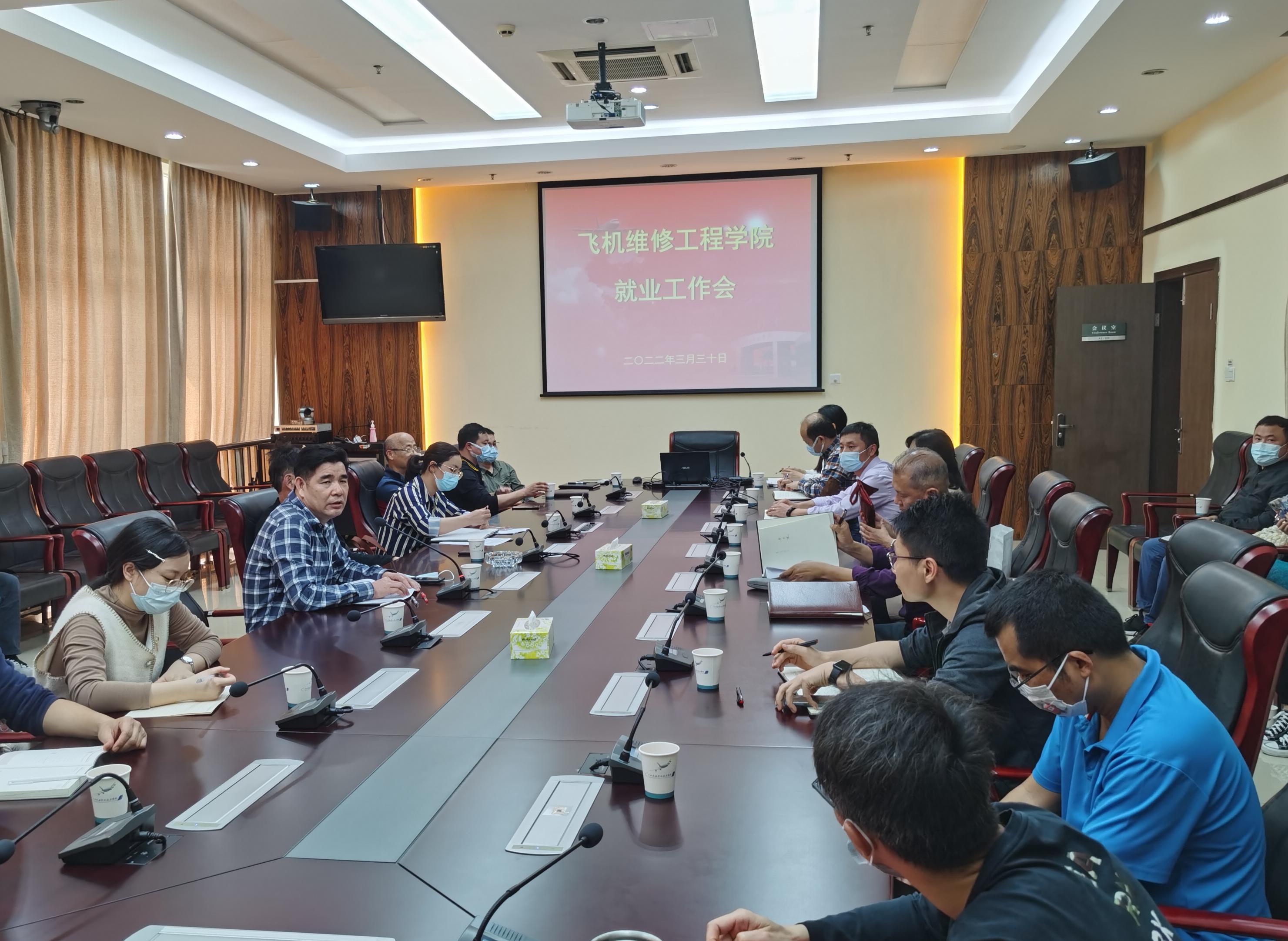 3月30日下午,飞机维修工程学院在白云机场校区A1-105会议室召开就业工作专班(扩大)会。学院领导班子、各党支部书记及支委、各教研室主任、全体班主任、毕业班辅导员、三办一中心全体行政人员参加会议。会议由党总支部方松书记主持。