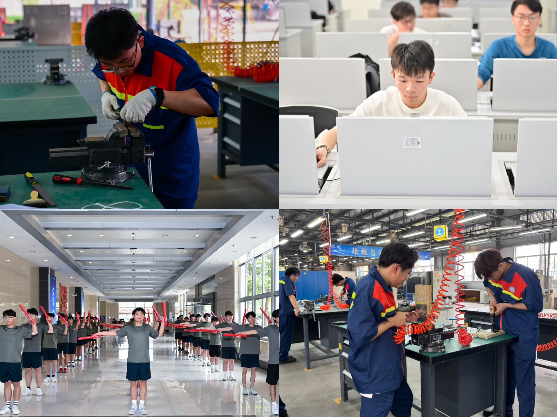 本次机务技能大比武共设有涡浆5发动机保险施工、飞机蒙皮修理、钳工操作3个项目。在为期半天的激烈角逐中,参赛选手全神贯注、沉着应战,凭借扎实的专业技能和稳定的心理素质,充分展现了新时代机务学子精益求精的职业素养和顽强拼搏的竞赛风采。经过激烈的角逐,2023级飞机电子设备维修2班罗家骏等11名学生夺得比赛项目一等奖,并授予“未来工匠”称号;2024级航空发动机维修技术1班陈煜阳等20名学生获得比赛项目二等奖;2024级飞机电子设备维修2班尹文广等29名学生获得比赛项目三等奖。