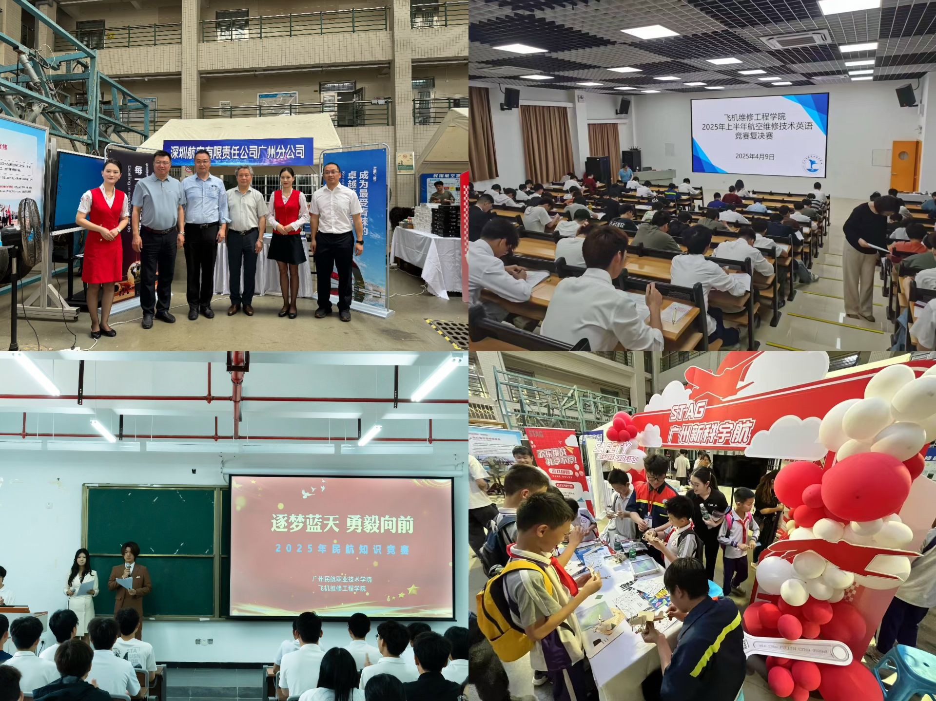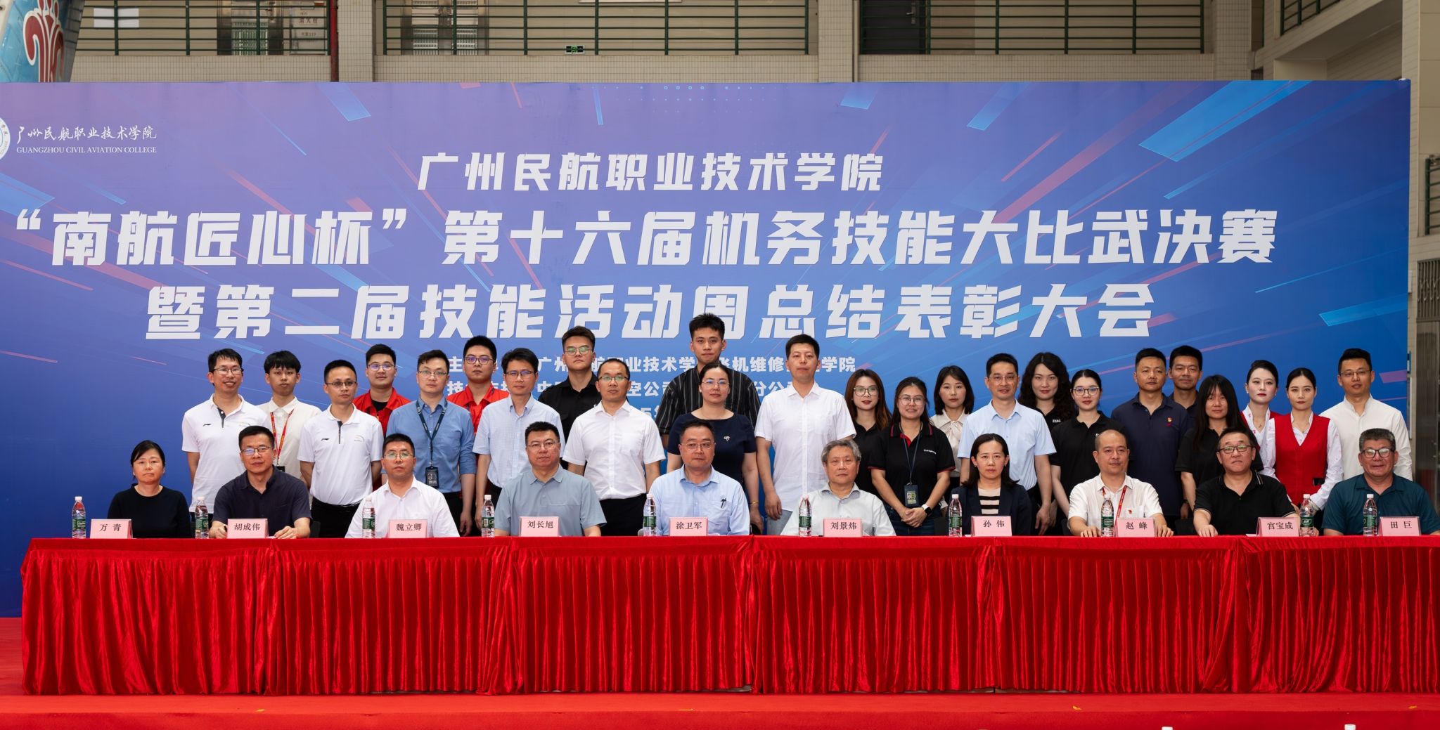 为全面贯彻落实习近平总书记对民航工作的重要指示批示精神,培养适应民用航空行业发展需要的专业技术人才,2025年3月- 4月,飞机维修工程学院举办“育技能人才 铸民航工匠——技能活动周”系列活动,4月23日下午,活动周的最后一个赛事——第十六届机务技能大比武决赛在白云机场校区A6机库举行,广州民航职业技术学院涂卫军副校长、广州新科宇航科技有限公司刘景炜总经理、深圳航空有限责任公司广州分公司党委刘长旭副书记、南航工程技术分公司人力资源部孙伟经理、南航工程技术分公司技能项目负责人魏立卿主任、海航航空技术有限公司广州维修中心赵峰经理,以及学校教务处胡成伟处长、学生工作处宫宝成处长、科研处万青处长、飞机维修工程学院相关领导和老师、学生代表出席了决赛开幕式。