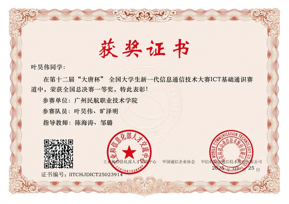 2024-2025年广东省职业院校技能大赛省一等奖(5G赛项)