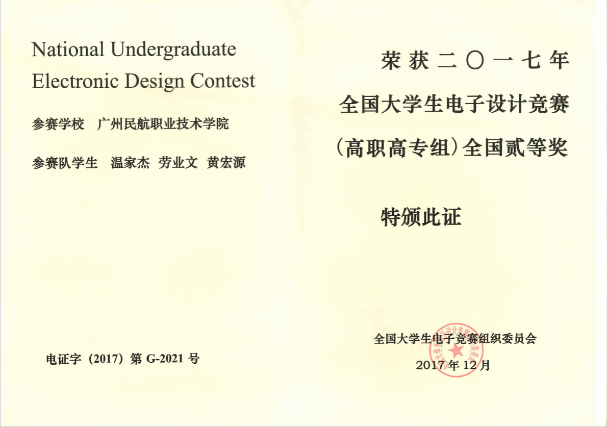2015年全国大学生电子设计竞赛全国二等奖