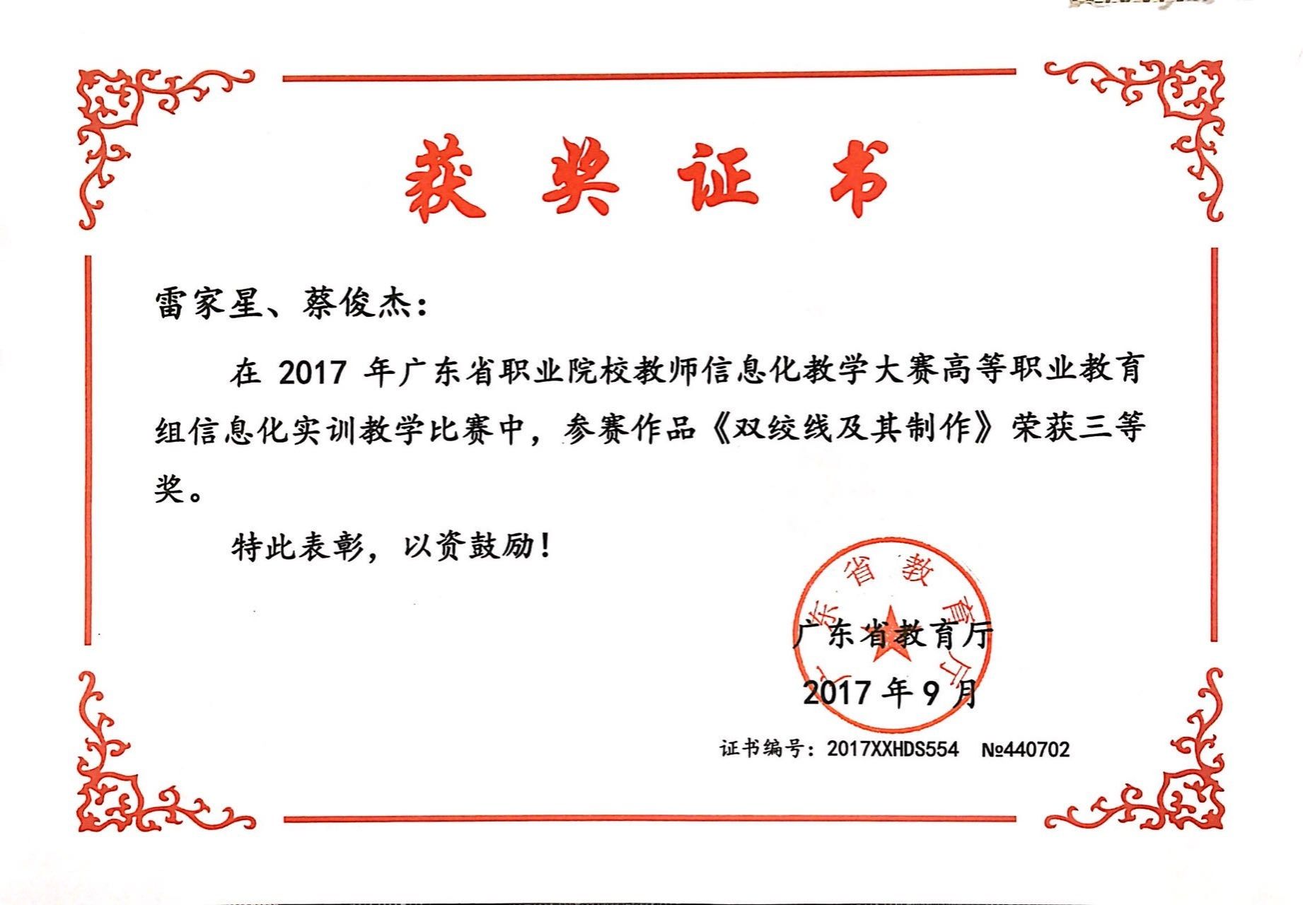2016年广东省高等职业院校信息化教学大赛三等奖