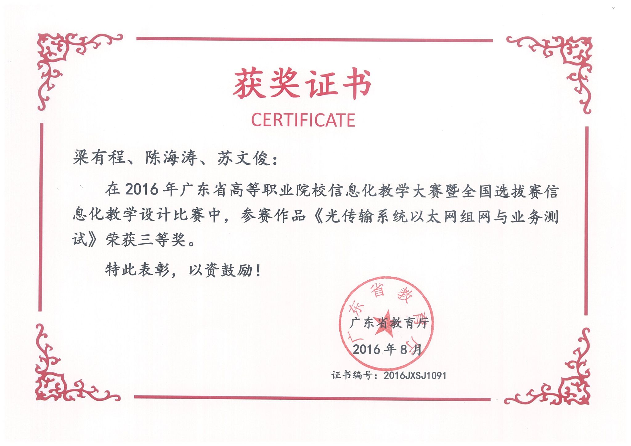 2017年广东省职业院校教师信息化教学大赛三等奖