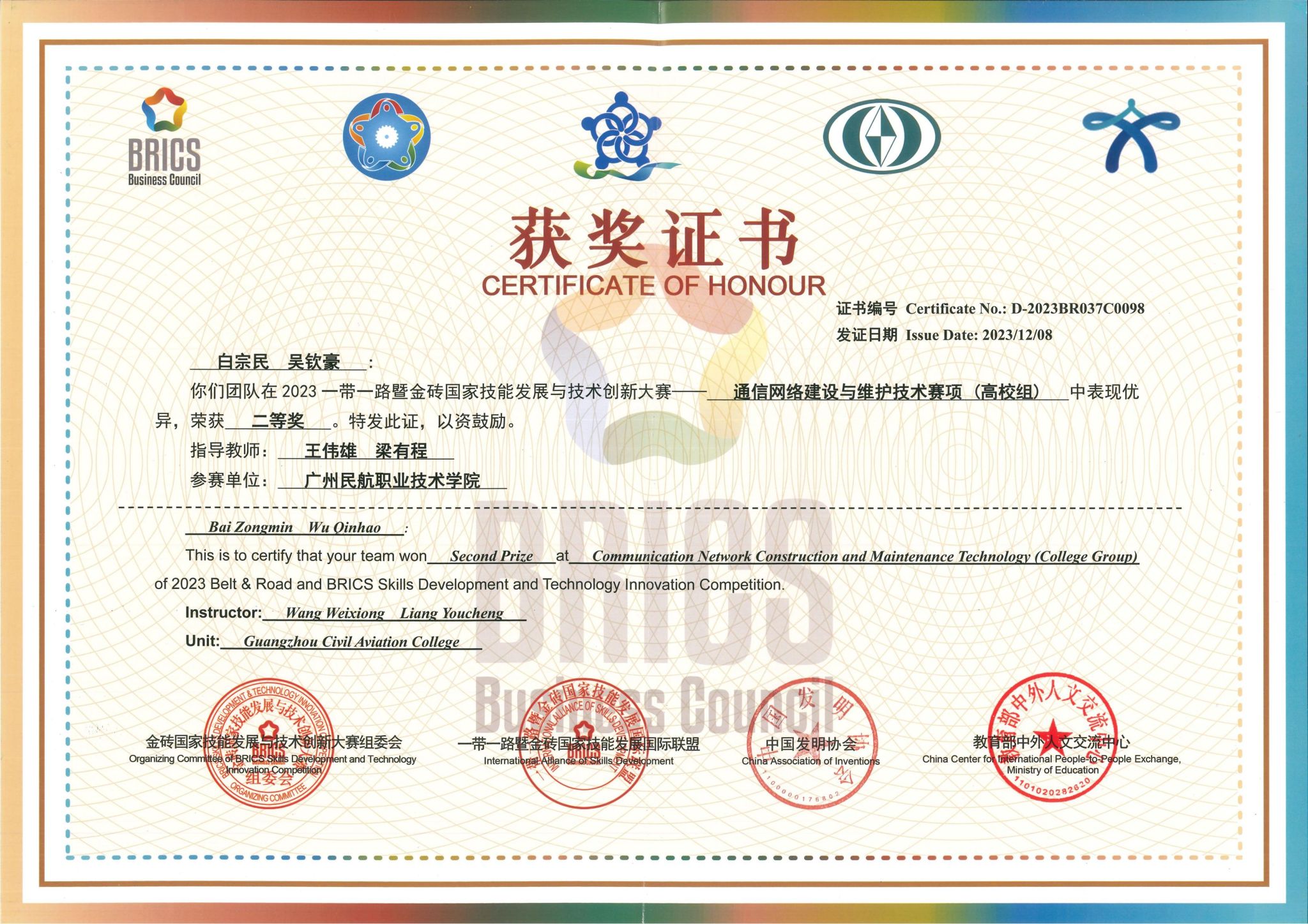 2024年一带一路暨金砖国家技能发展与技术创新大赛二等奖