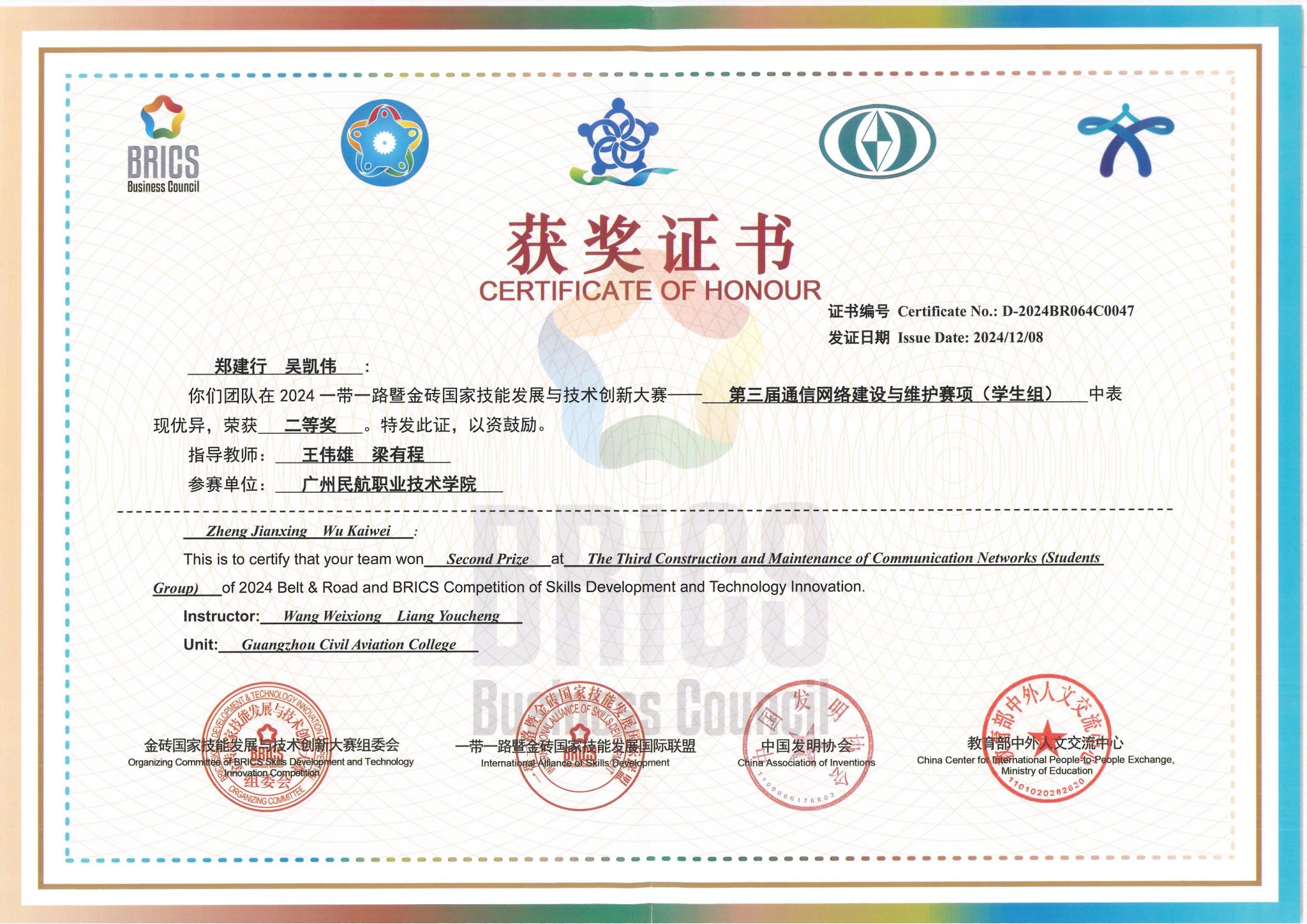 上一条:2023年一带一路暨金砖国家技能发展与技术创新大赛二等奖 下一条:第六届全国大学生现代通信网络部署与优化设计大赛一等奖(吴晓棋)