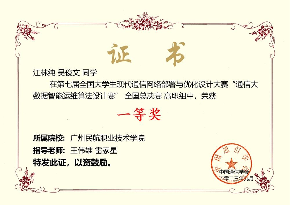 上一条:第七届全国大学生现代通信网络部署与优化设计大赛一等奖(吴钦豪 柯任逢) 下一条:第八届全国大学生网络与信息技术赛项全国总决赛一等奖(吴凯伟)