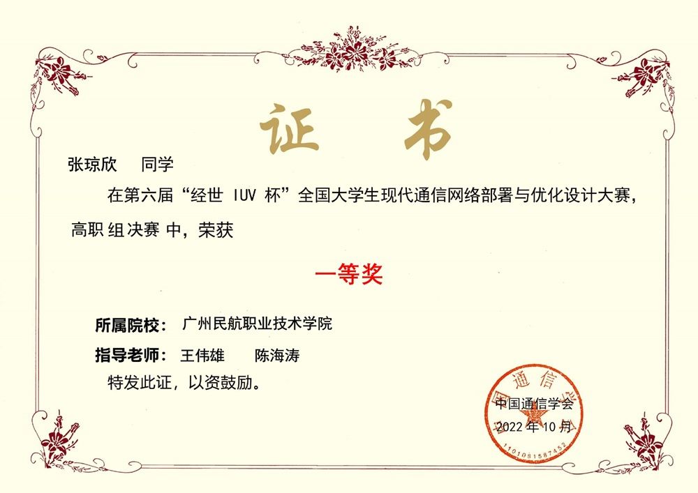 上一条:第六届全国大学生现代通信网络部署与优化设计大赛一等奖(吴晓棋) 下一条:第七届全国大学生现代通信网络部署与优化设计大赛一等奖(吴钦豪 柯任逢)