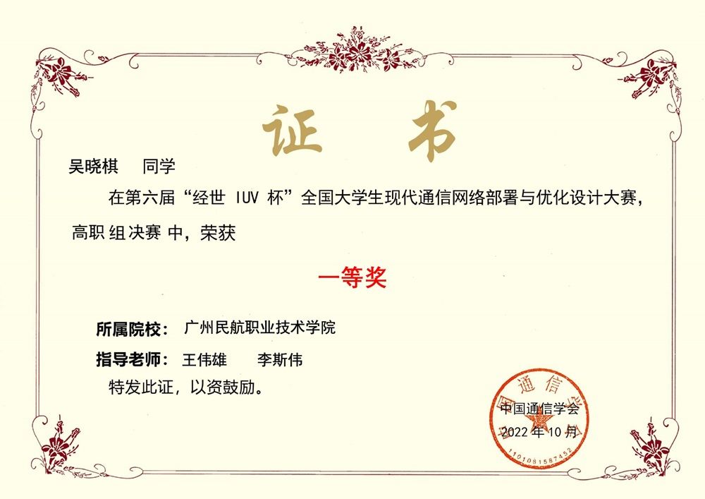 上一条:2024年一带一路暨金砖国家技能发展与技术创新大赛二等奖 下一条:第六届全国大学生现代通信网络部署与优化设计大赛一等奖(张琼欣)