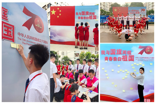 在中华人民共和国成立70周年到来之际,为让更多师生表达自己的爱国之心,进一步激发师生爱国之情。9月25日下午,由校团委主办的“我与国旗同框 青春告白祖国”活动在三个校区同步开展。活动以“青春告白祖国”,“我与国旗合影”等形式表达对祖国的热爱。